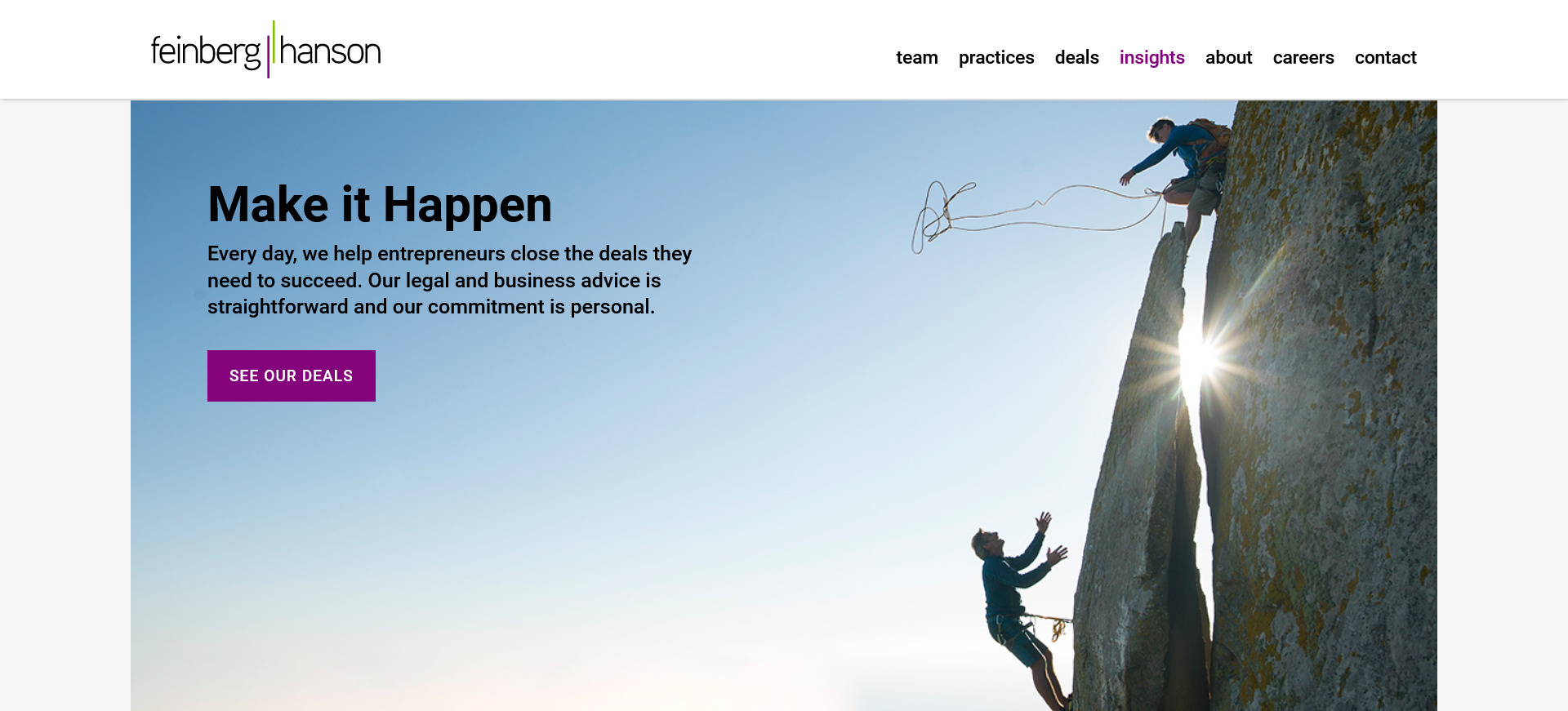 The law firm of Feinberg Hanson was formed in 2002 by veteran lawyers from major law firms who chose to focus on working with growing companies. As a boutique corporate firm, they have focused on entrepreneurship. They have grown to now represent hundreds of small to mid-sized companies and their investors.